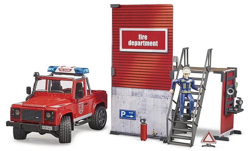 BRUDER-EMERGENCY:FIRE STATION WITH LAND ROVER