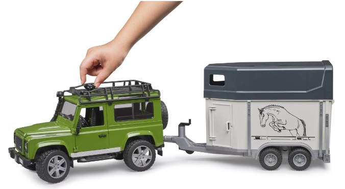 Le nouveau Defender proposé par BRUDER allie des qualités tout-terrain exceptionnelles à l'élégance intemporelle du design Land Rover. Comme pour tous nos véhicules, chaque détail de ce nouveau modèle est fidèle à l'original. Grâce à ses détails surprenants, tels que la plaque de structure en relief sur le capot moteur et ses nombreuses fonctionnalités, le modèle que nous avons créé saura séduire les passionnés de Land Rover comme tous ceux qui apprécient le souci du détail. Outre le capot moteur, qui dévoile le bloc moteur détaillé, les portes arrière et latérales s'ouvrent, tandis que la banquette arrière et l'attelage sont amovibles. Grâce à sa suspension sur les deux essieux, ce modèle réduit franchit tous les terrains avec la même aisance que le véritable Defender. De plus, l'essieu avant est directionnel grâce à la colonne de direction supplémentaire (fournie), empruntée à la gamme de tracteurs BRUDER, rendant ainsi sa conduite extrêmement facile. Ce véhicule est également idéal pour les amateurs d'équitation, car il combine capacités tout-terrain, design élégant et possibilité d'atteler une remorque à chevaux.