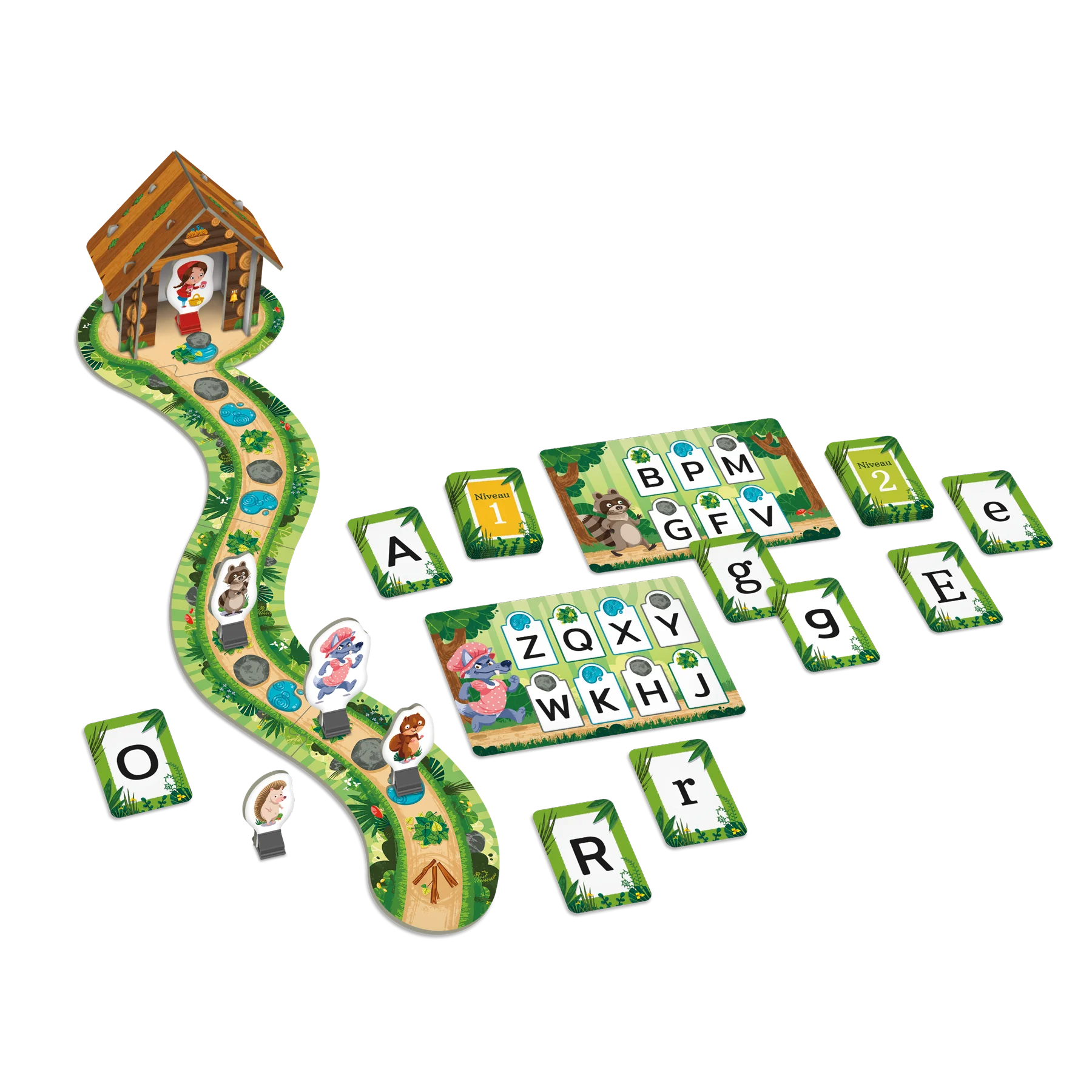 Objectif : Reconnaitre les lettres de l'alphabet et leur nom Dans la forêt de l’alphabet, le Petit Chaperon rouge prépare un panier de confitures pour sa grand-mère. Soudain, les animaux de la forêt aperçoivent le grand méchant loup déguisé en Mère-Grand qui se dirige vers la cabane du Petit Chaperon rouge! Réussiront-ils à prévenir le Petit Chaperon rouge à temps? Alpha-bêtes est conçu pour aider les enfants de 4 à 7 ans à développer leur connaissance des lettres de l’alphabet. Le jeu les amène progressivement à reconnaitre et à nommer les lettres ainsi qu’à découvrir leurs différentes formes (minuscules et majuscules). Les quatre personnages, les deux niveaux de jeu et les différentes façons de jouer en font un jeu évolutif qui prépare l’enfant à l’apprentissage de la lecture et de l’écriture tout en s’amusant.
