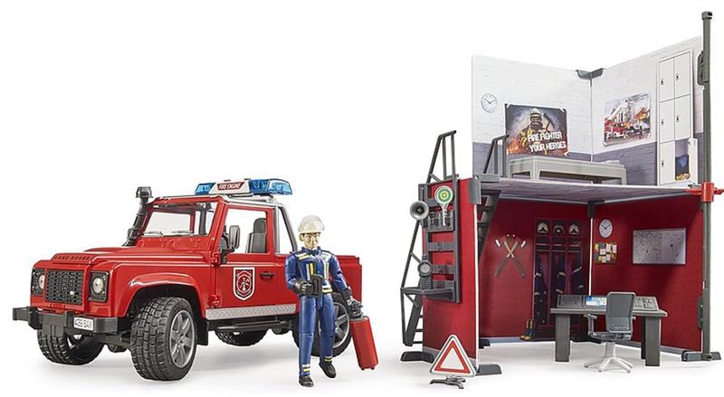 BRUDER-URGENCE:CASERNE DE POMPIERS AVEC LAND ROVER