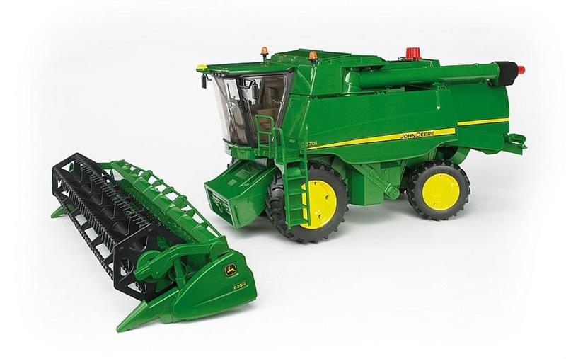 John Deere, the worlds leading tractor manufacturer, also makes combine harvesters. The T series of these harvesters underwent new development and now includes as its top model in terms of performance and equipment the model T 670i. The same holds true for its entirely new BRUDER model which represents a milestone in the history of toys that meet the most challenging requirements. While the highly efficient technology incorporated into these impressive machines, for the most part, operates unseen by the casual observer, children are always fascinated with the spectacle created by combine harvesters when harvesting crops. With our new John Deere combine harvester BRUDER has managed to make this technology come to life and turn it into a tangible experience. Our little farmers will be thrilled to learn how easy this big harvester steers and how exciting it is to be able to drain the grain tank via the drain tube. Its other realistic details including the opening cabin door, numerous opening covers, a detachable cutting unit with pendulum suspension and level compensation, to name only a few are sure to make this toy enormously fun to use.