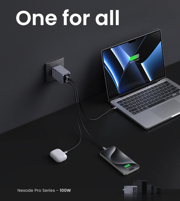 The Nexode Pro 100W Charger from UGREEN's Nexode Pro Series brings a next-generation charging experience, combining advanced technology with efficient power delivery. Designed to fast-charge multiple devices simultaneously, this charger is both powerful and compact, ideal for everyday charging needs. Key Features: Nexode Pro Series: UGREEN's Nexode Pro 100W charger is part of a new line of advanced chargers, delivering professional-grade performance for your charging needs with next-generation technology. Smart Charging 3-in-1: Featuring 2 USB-C ports and 1 USB-A port, this charger intelligently distributes power to charge up to three devices simultaneously, maximizing efficiency without sacrificing speed. 100W Fast Charging: The USB-C1 port provides up to 100W of power when used alone, charging a 14-inch MacBook Pro from 0% to 50% in just 27 minutes, making it ideal for fast, on-the-go charging. GaNInfinity Chip Technology: Built with the latest GaN technology, this charger offers faster and more powerful charging while generating less heat. Its compact, lightweight design makes it easy to carry without compromising performance. Comprehensive Protection: Equipped with intelligent safety chips, the Nexode Pro 100W charger protects your devices against short circuits, over-voltage, overheating, and over-current, ensuring safe and reliable charging. Specifications: *Input: 100-240V~ 50/60Hz 1.8A Max *USB-C1 Output: 5.0V=3.0A 9.0V=3.0A 12.0V=3.0A 15.0V=3.0A 20.0V=5.0A 3.3-21.0V=3.0A 100.0W Max *USB-C2 Output: 5.0V---3.0A/9.0V---3.0A/12.0V---2.5A 30.0W Max *USB-A Output: 4.5V=5.0A 5.0V=4.5A 5.0V=3.0A 9.0V=2.0A 12.0V=1.5A 22.5W Max *Compatible with: PD3.0(PD2.0) /QC4+(QC4.0\QC3.0\QC2.0)/PPS2.0/PPS/AFC/APPLE 5V2.4A/BC1.2 *Total Output:100W Max