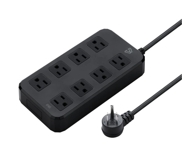 WeatherGuard IPX6 Rating: Can stand up against powerful weather conditions including heavy rain. Can not be submerged. Surge Protection: 900 Joules of surge protection to protect your devices from sudden power surges 10 Ft Cable Length: For versatile use where you need it 8 Full Power Outlets: 1875W of full power for all of your power requirements Power Switch: For safe operation and power management