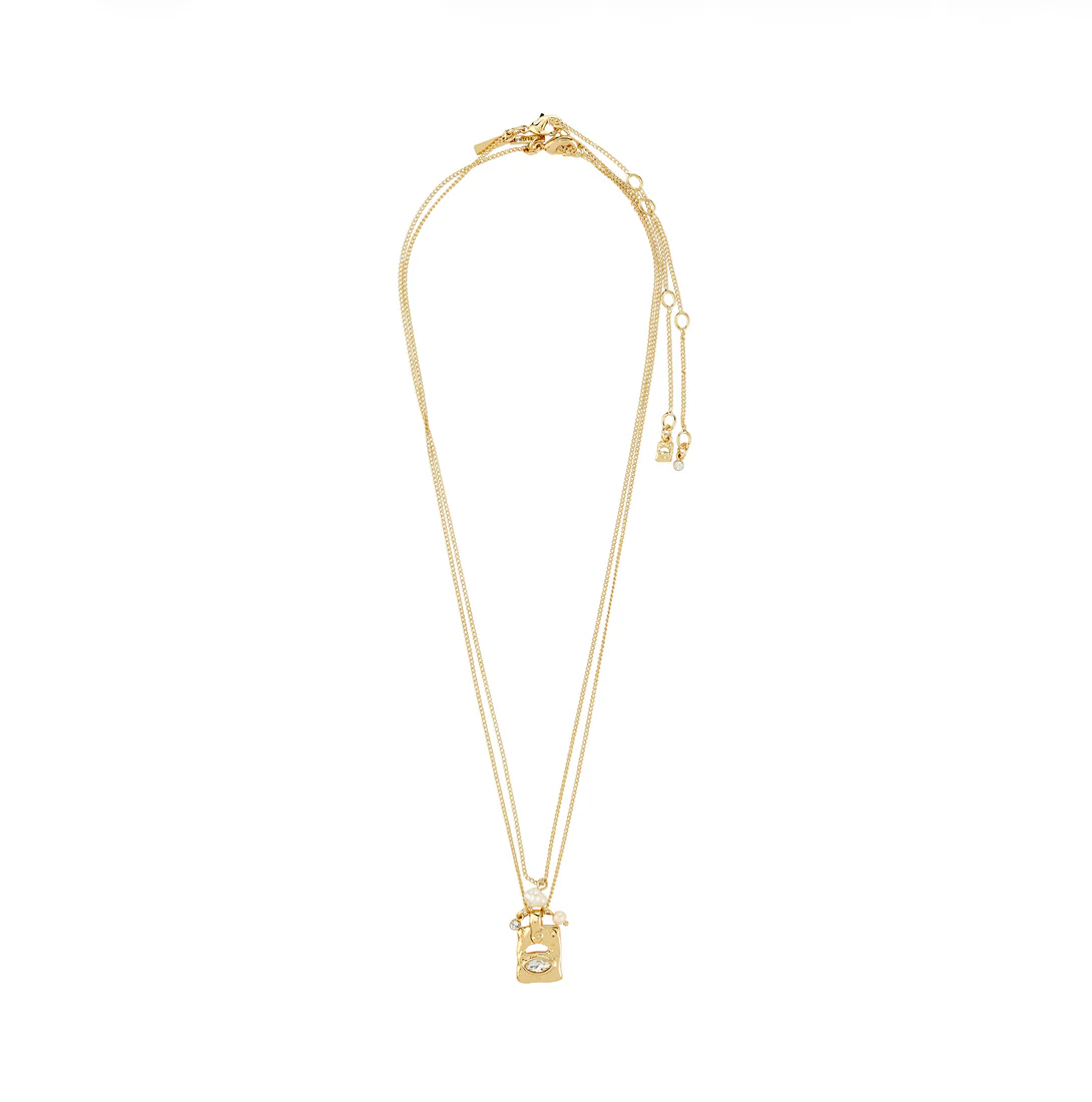 Pilgrim - Fire recycled crystal pendant necklace 2 in 1 gold plated