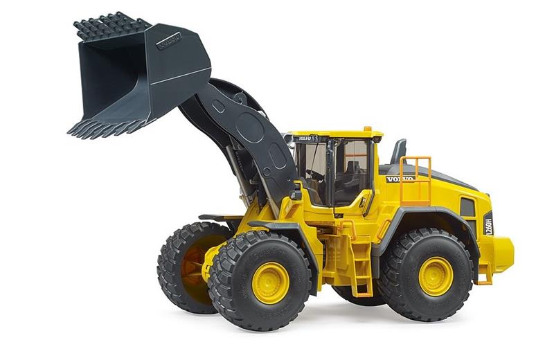 L’efficacité du transport et la préservation des ressources sont des exigences essentielles pour les engins de chantier modernes. Peu de chargeurs sur roues répondent à ces besoins aussi efficacement que le nouveau Volvo L260H. Combinant un moteur, une boîte automatique et un système hydraulique de pointe, il consomme 10 % de moins que son prédécesseur. Avec un poids de travail allant jusqu’à 35 tonnes, ce chargeur est un véritable travailleur de force pour les carrières et les gravières. Ce chargeur sur roues impressionnant est le tout dernier produit phare de l’univers thématuque des véhicules de chantier de BRUDER. Le Volvo L260H est équipé d’un bras de chargement entièrement fonctionnel et d’une imposante pelle basculante. La cabine reproduite dans les moindres détails sert de poste de travail aux célèbres figurines bworld de BRUDER. Le capot de moteur à l’arrière peut être ouvert pour différents travaux d’entretien. Le grand Dumper Volvo (réf.° 02455) et sa vaste zone de chargement est le complément idéal du nouveau chargeur sur roues Volvo L260H.